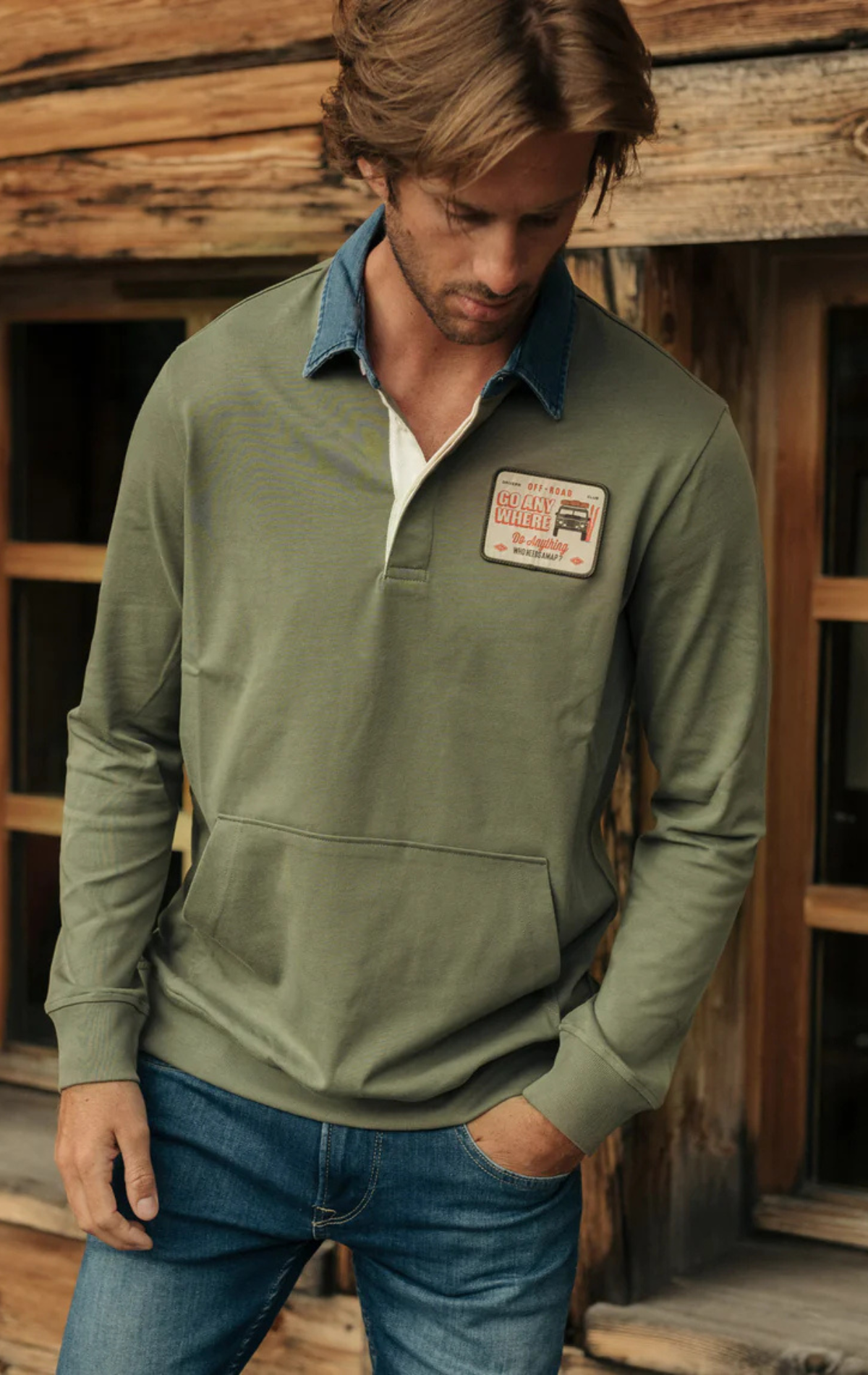 Nothing says preppy loungewear like a rugby shirt. And nothing screams casual like denim. Put the two together and you’ve got a pretty unique garment. Add a hoodie pocket to the front and the comfort element is tenfold. Ribbed cuffs and our signature stitched patch make the PO59. unmistakably 8JS!