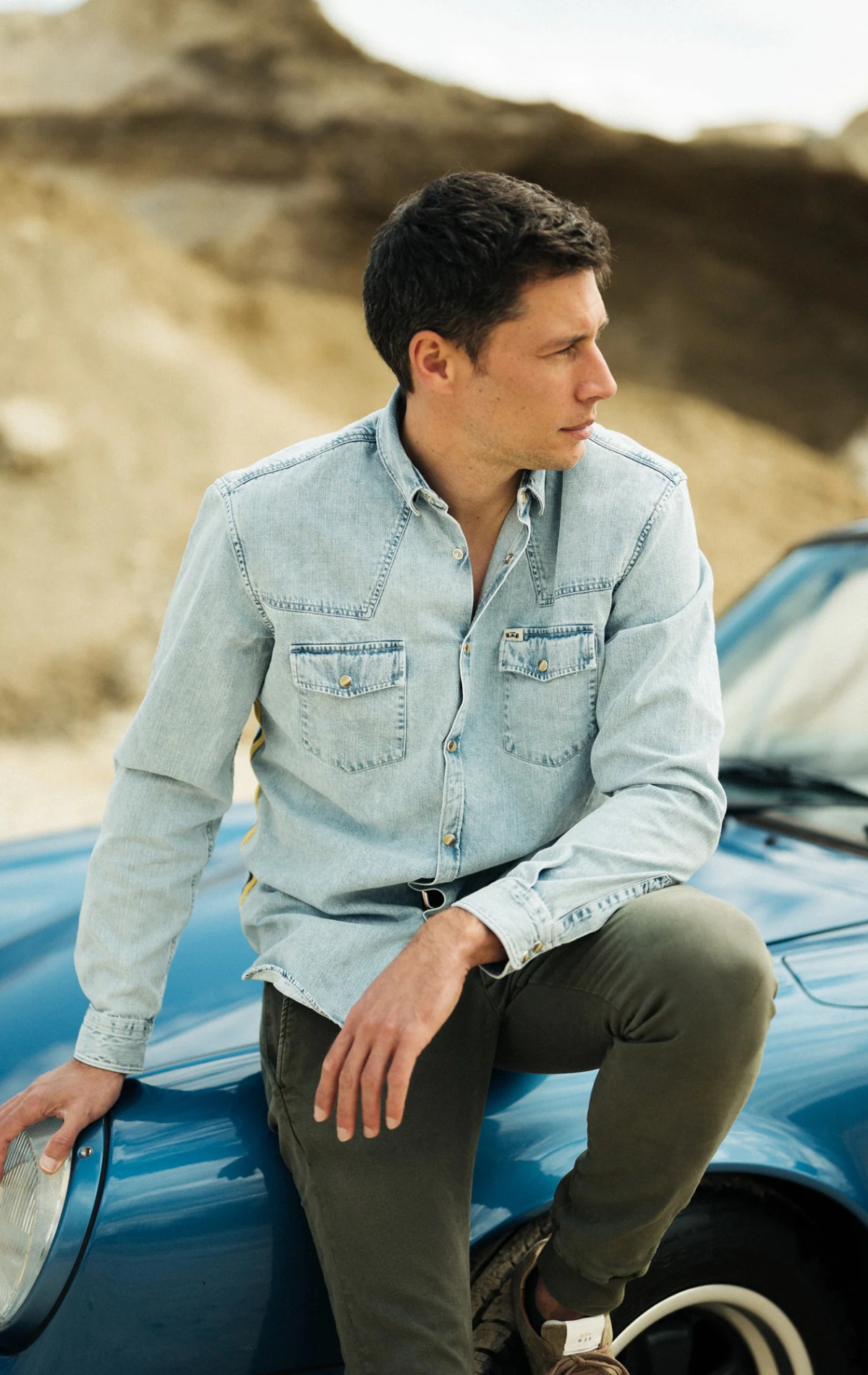 Inspired by classic western shirts, our SH19. takes denim to another level. Featuring our signature racing stripes, the shirts are available in a variety of shades, from a “Dark Wash” all the way to a “Super Light Wash”. In true americana style, the shirts also feature pearl snap buttons for extra style points. Wear this to semi-formal lunches, or with the sleeves rolled in the garage!