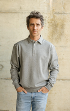 Crafted from a soft and comfortable fabric, it retains the essence of a classic sweatshirt with its relaxed fit and ribbed finishes, while adding a structured touch with its buttoned polo collar.