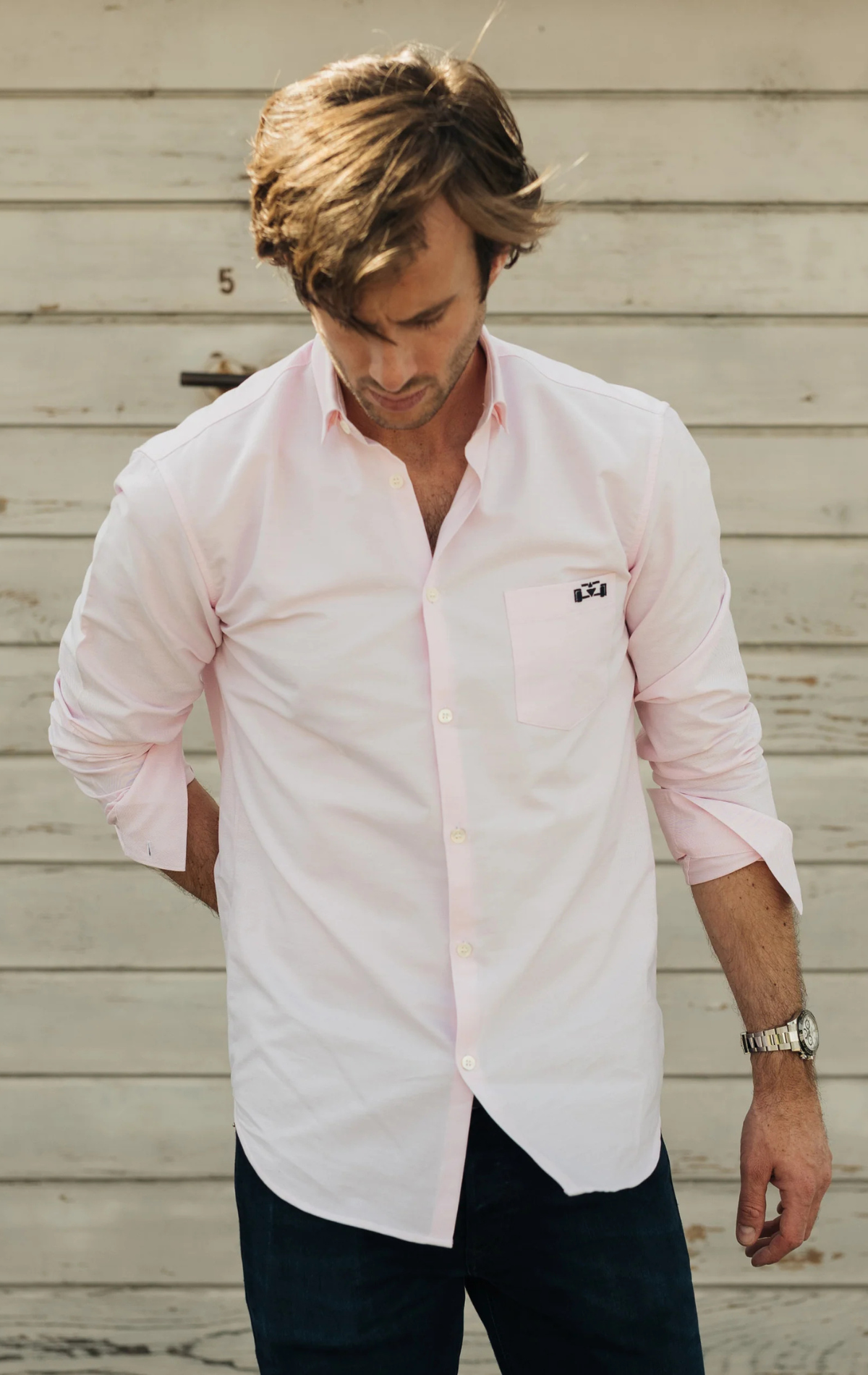 - Button down collar with hidden buttons